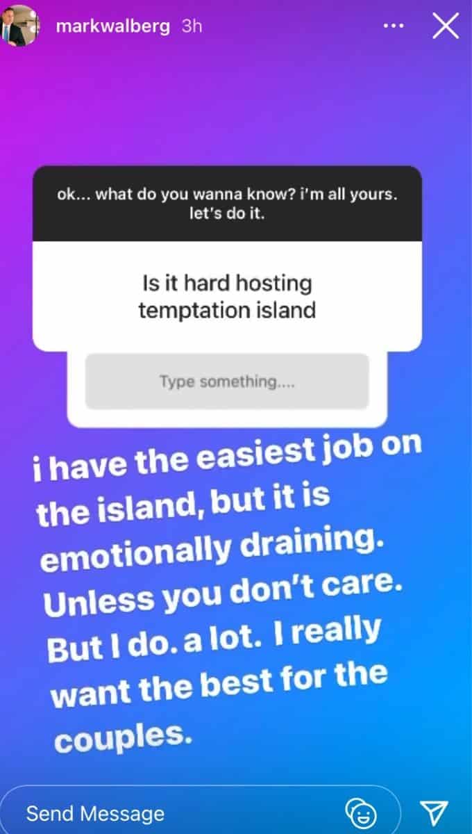 Temptation Island host Mark L. Walberg answers IG Live questions about what his job is like