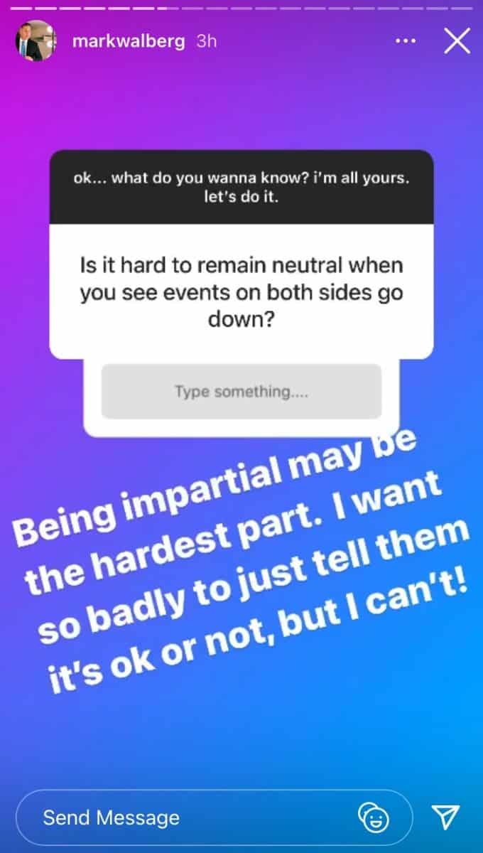 With this in mind, one fan asked, “Is it hard to remain neutral when you see events on both sides go down?”